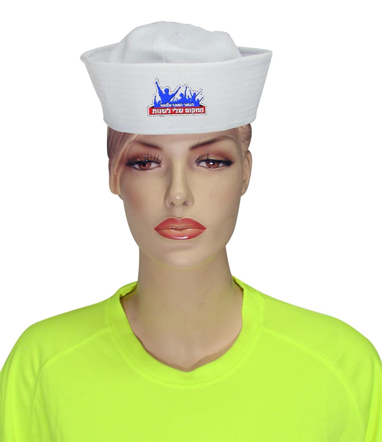 כובע מצחייה בצבע לבן, כובע עם אפשרות להדפסה צבעונית \ הדפסה בצבע אחד.