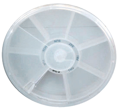 קופסא עגולה מחולקת ל-7 חלקים לתרופות למהלך כל ימי השבוע